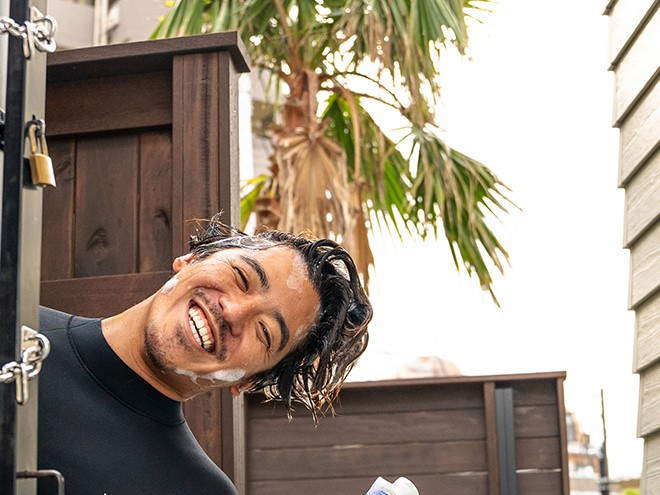 ウエットスーツはいつもサンダルウッドジャスミンのマジックソープで洗っているので、着用時には優しく香っていて、サーフィンする時も気分良くモチベーションアップにも繋がるのです。
