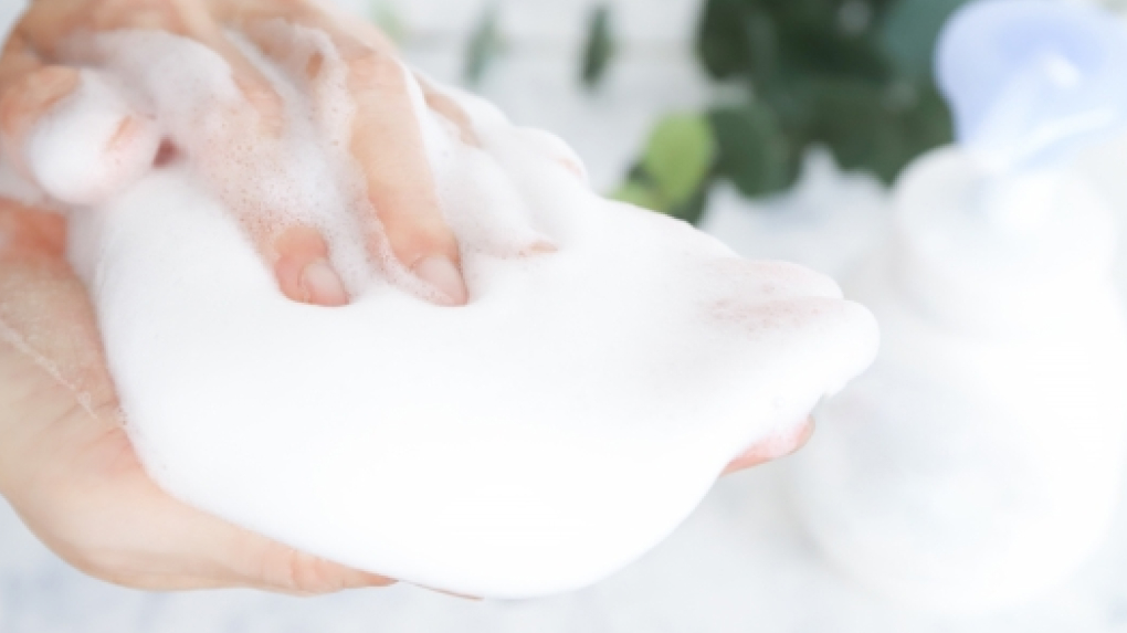 濡らした手やタオルなどに適量をつけ、よく泡立てて洗い、その後流します。