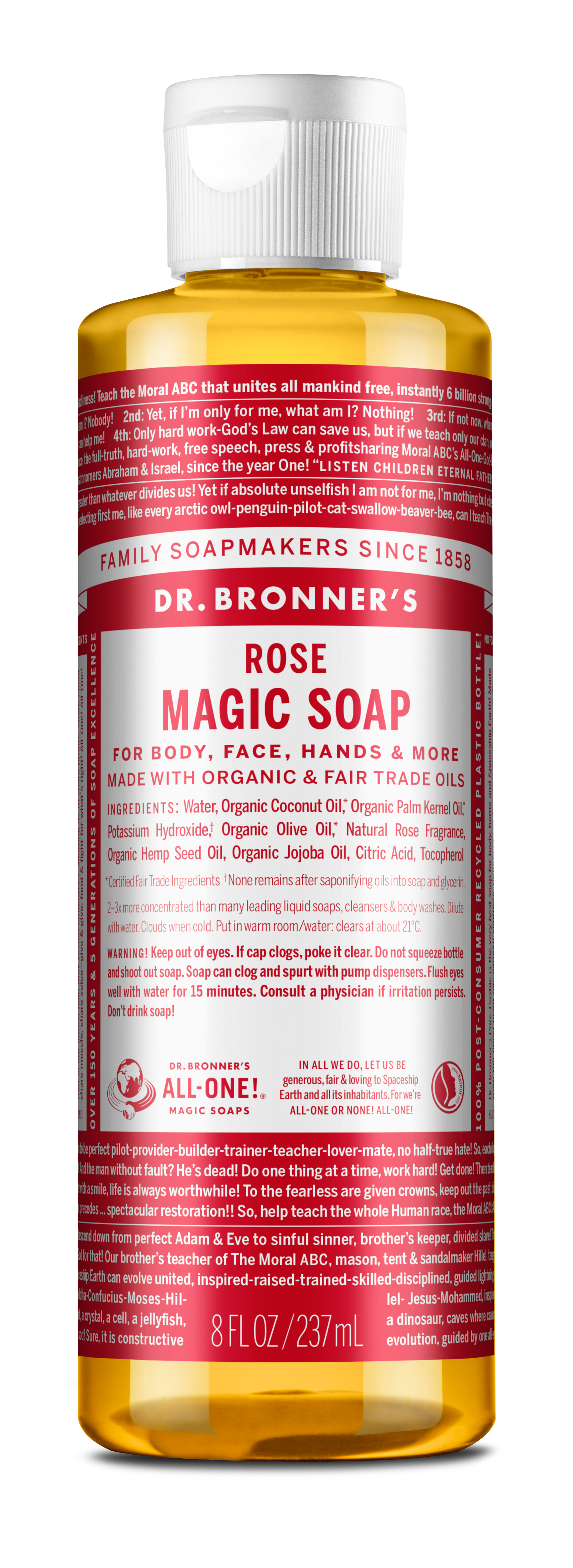 マジックソープは、天然由来成分100%で、無農薬有機栽培で育てられたオーガニック原材料を使用しています。少量でもしっかり泡立ち、肌のうるおいを守りながらすっきりと洗い上げるので、デリケートな肌の方にも心地よくご使用いただけます。濃厚な天然洗浄成分配合なので、使い方も色々。エコロジカルで高い品質が支持されて、2000年から全米売上げNo.1*のナチュラルソープに選ばれています。