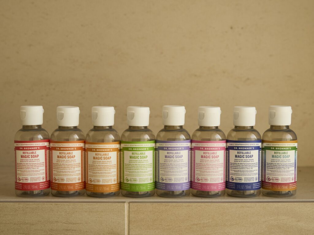 地球にやさしいだけでなく、マルチに使えるマジックソープを詰め替えて持ち運べば、旅行先やジムでも便利に使えます。