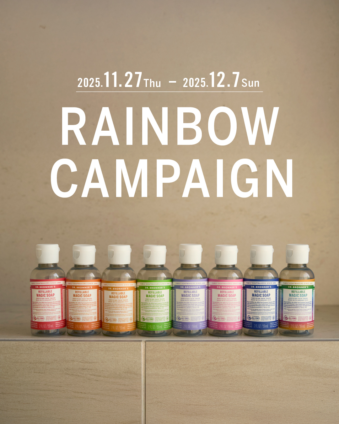 ・Instagramでのご参加の場合:ドクターブロナー公式アカウント「@drbronner.japan」をフォローしたのち、キャンペーン投稿にいいね&「🌈」とコメントしてください。